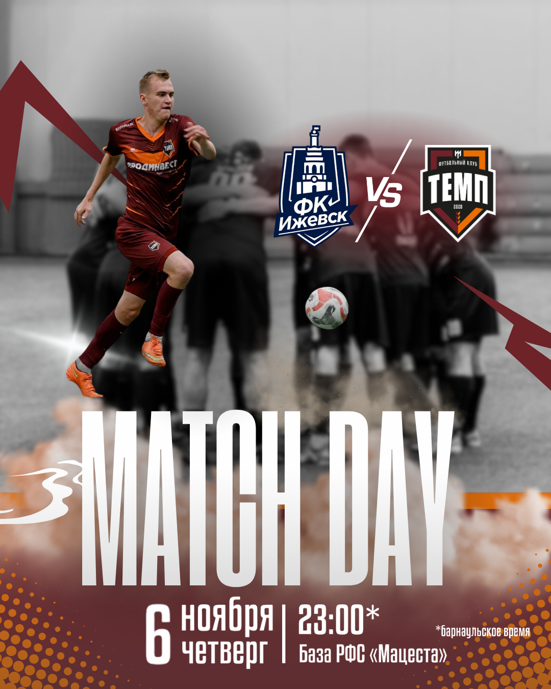 • «Ижевск» (Ижевск) — «Темп» (Барнаул) • Третья лига. Финальный этап • 6 ноября • 23:00 (Брн) • База РФС «Мацеста», г. Сочи • Прямая трансляция