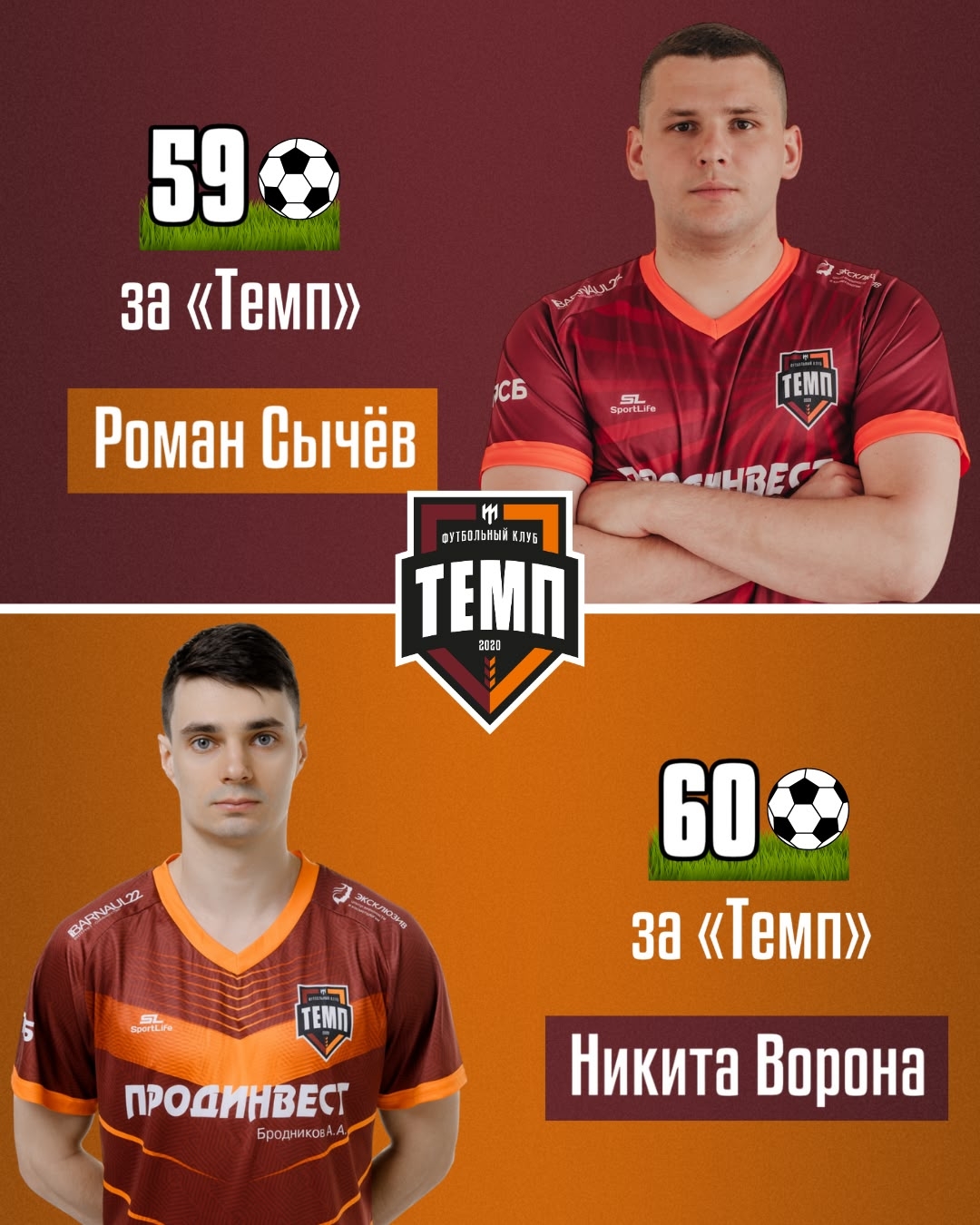 Долгое время самым результативным игроком «бордово-оранжевых» с 59-ю мячами был форвард Роман Сычёв, но вчера наш капитан забил свой 60-й гол за «Темп», благодаря чему поднялся на первое место в списке лучших бомбардиров «Темпа» всех времён! Немного интересной статистики: • 45 мячей из 60-ти были забиты Никитой в рамках Третьей лиги • 42 гола из 60-ти Ворон отправил в ворота соперников левой ногой • 17 мячей он забил с пенальти • Ещё 8 — прямым ударом со штрафного Так держать, кэп! Ты — легенда!