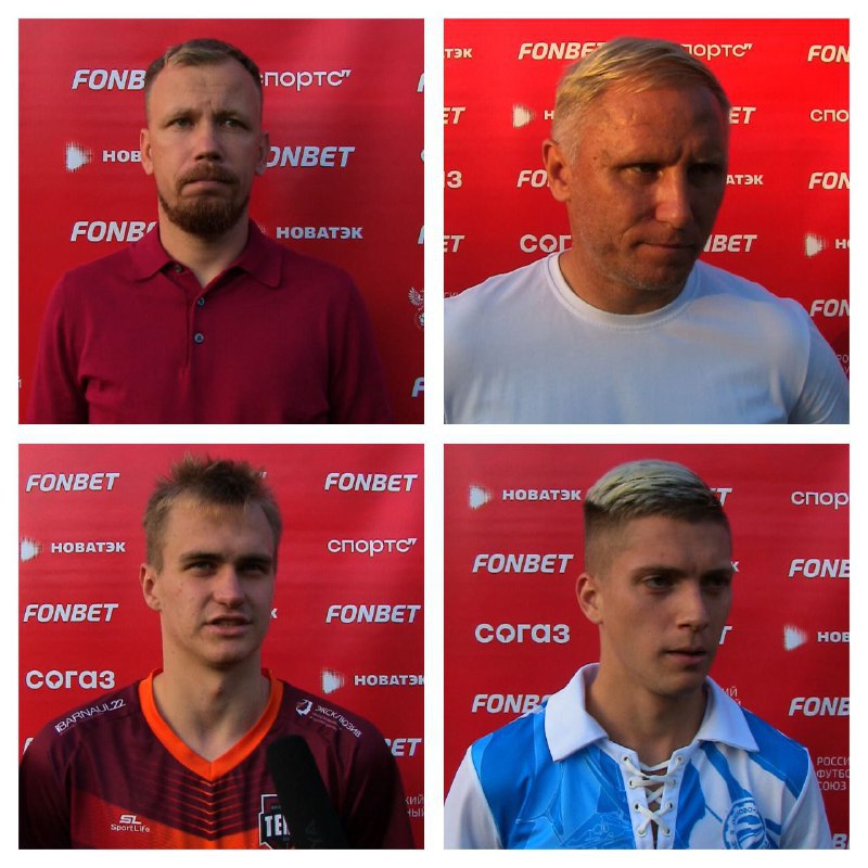 Послематчевые флеш-интервью главного тренера ФК «Темп» Ивана Старкова и главного тренера ФК «Знамя Труда» Александра Данцева, полузащитника ФК «Темп» Никиты Князева и нападающего ФК «Знамя Труда» Дмитрия Савина.