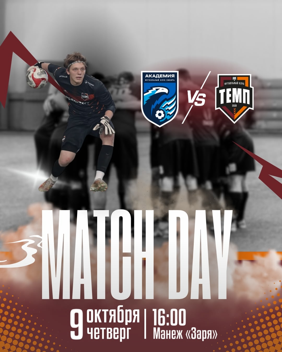 • «Темп» (Барнаул) — «Сибирь-М» (Новосибирск) • Третья лига • 9 октября • 16:00 (Брн) • Манеж «Заря» (г. Новосибирск, ул. Спортивная, 2) • Прямая трансляция матча Завершим чемпионат победой! Обращаем внимание, что из-за погодных условий матч пройдёт в манеже «Заря»!
