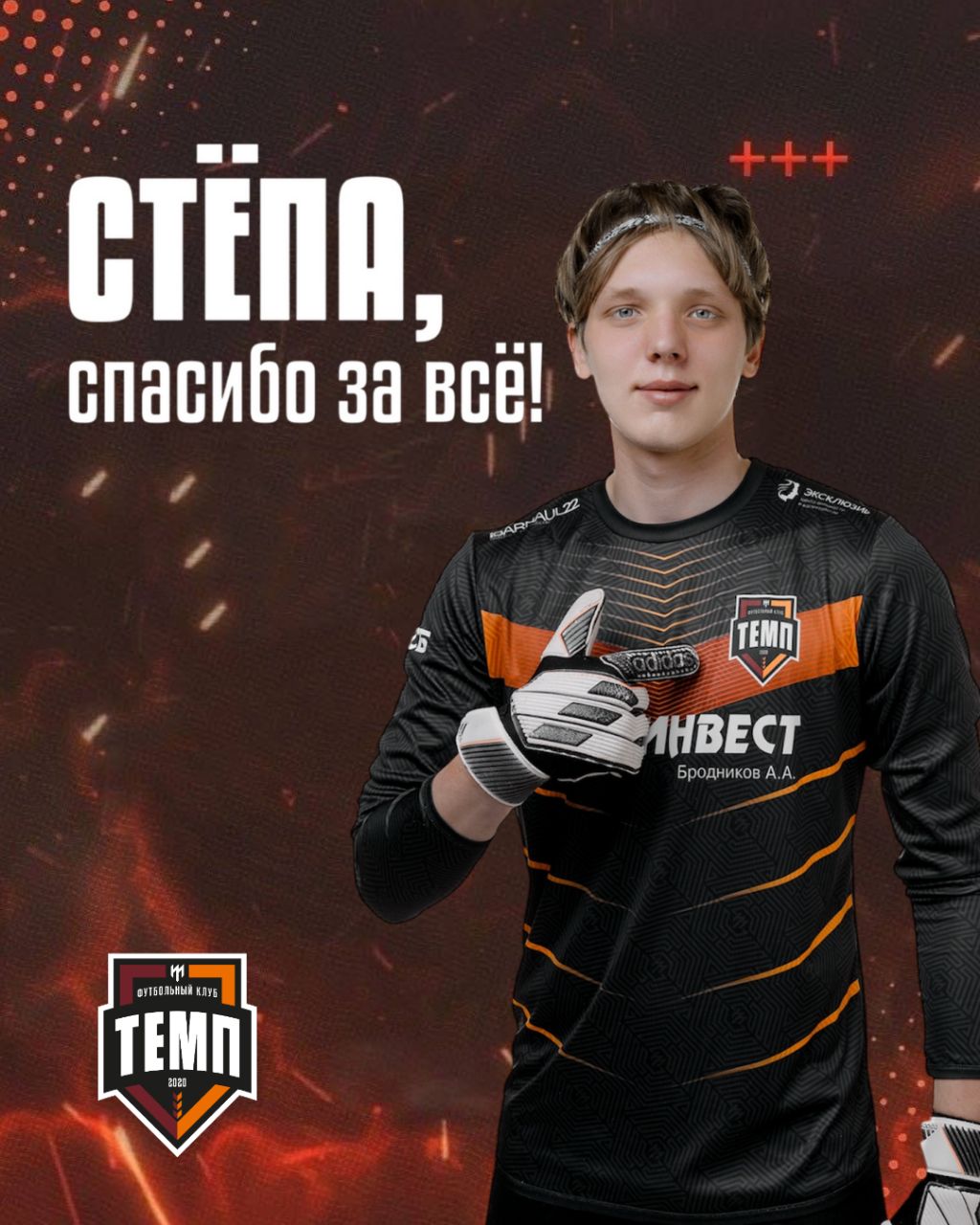 Сегодня стало известно, что наш голкипер подписал 2-летний контракт и присоединится к своей новой команде в середине января. В прошлом сезоне «Химик» занял второе место в четвёртой группе Второй лиги дивизиона «Б», уступив всего одно очко пермскому «Амкару». Степан Масальских пополнил стан «бордово-оранжевых» в 2025 году. За минувший сезон он принял участие в 32 матчах (2880 минут), из которых 11 сыграл «на ноль». Стёпа стал лучшим по количеству игр подряд без пропущенных мячей (4), повторил рекорд Владимира Панова по количеству «сухарей» в чемпионате за сезон (10). В составе «Темпа» стал чемпионом Третьей лиги, выиграл Кубок Сибири и дошёл до Третьего раунда Пути регионов FONBET Кубка России, навсегда запомнившись любителям российского футбола тремя сэйвами в серии пенальти в матче с «Уральцем-ТС». Степан Масальских стал пятым игроком в истории «Темпа» который подписал контракт с профессиональным клубом. До него это делали Руслан Леонов, Александр Солошенков, Егор Щеблыкин и Никита Гречников. Стёпа, футбольный клуб «Темп» желает тебе огромной удачи, большого количества побед и красивых спасений! Будь собой, ни в чём не сомневайся, ты лучший! Мы тебя любим, спасибо тебе за всё!