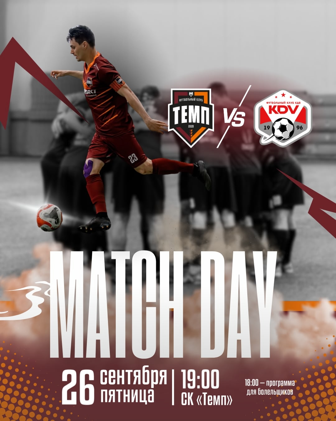 • «Темп» (Барнаул) — «КДВ» (Томск) • Третья лига • 26 сентября • 19:00 • СК «Темп», г. Барнаул • Развлекательная программа начнётся в 18:00! Вас ждёт аквагрим, сладкая вата, прохладительные напитки и классные игры! Верим в «Темп»!
