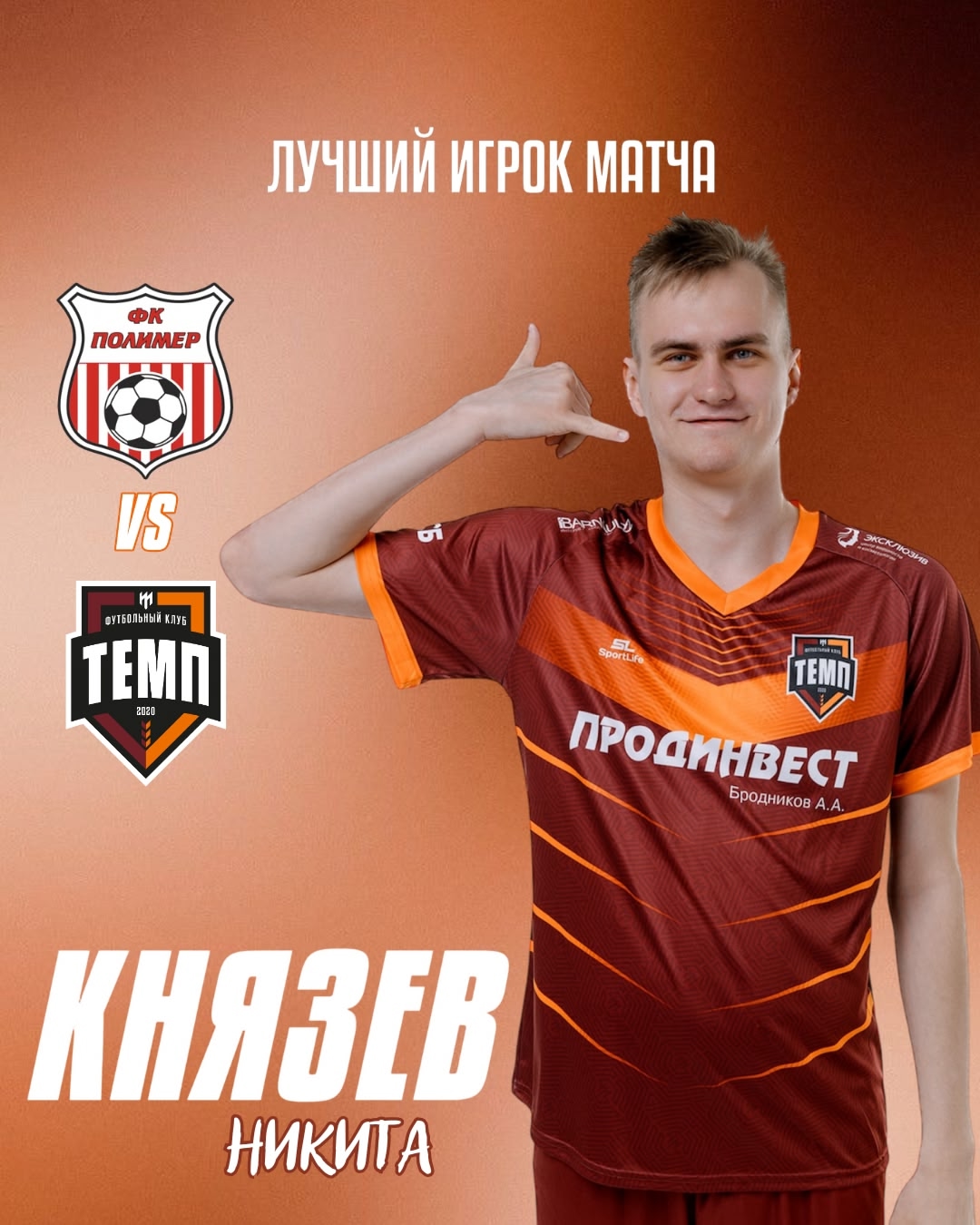 Лучшим игроком матча «Полимер» — «Темп» становится Никита Князев!