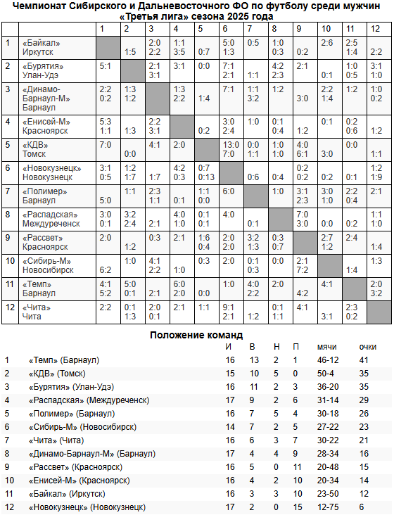 ТУРНИРНАЯ ТАБЛИЦА